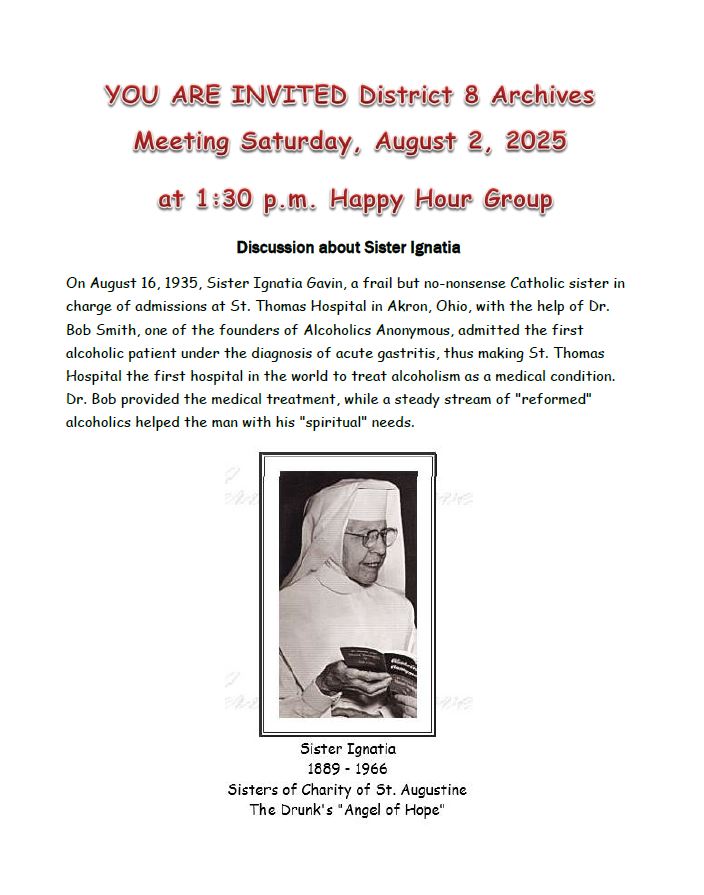 Happy Hour Group 3466 Eastdale Circle, Montgomery, AL, United StatesDistrict 8 Archives Committee Meeting Archives district 8 committee monthly meeting Following the noon meeting at Happy Hour group
